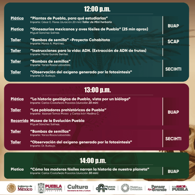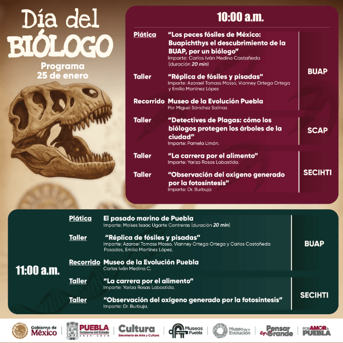 Este domingo 25 de enero, el Museo de la Evolución Puebla será punto de encuentro para quienes sienten curiosidad por la ciencia y el mundo natural. En el marco del Día del Biólogo, el recinto ofrecerá una jornada llena de actividades pensadas para aprender de forma cercana y divertida, con pláticas breves, talleres interactivos y recorridos guiados que acercan la biología más allá de los libros.